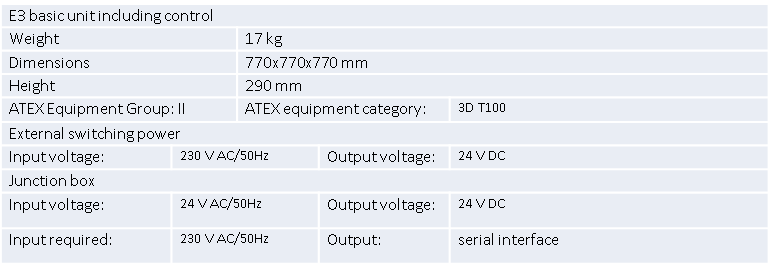 Complete removal system according to the above description in two versions: E3 basic unit including control